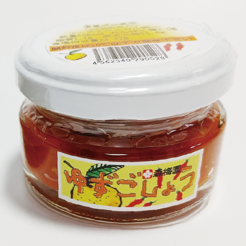 自家栽培の唐辛子、大分県の産柚子、長崎県産塩で保存料無添加で仕上げたゆずごしょうです。普通、皮を厚くむいて量を増やします。森家のゆずごしょうは、香りのよい薄皮を使用するため、香り高い仕上がりになってます。